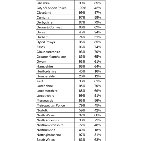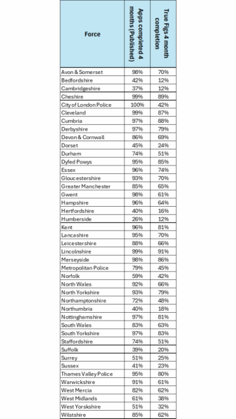 Across the majority of police forces we now see a very different picture emerging. Taking Gwent as an example we go from 98% (which seems very impressive) to 61%.