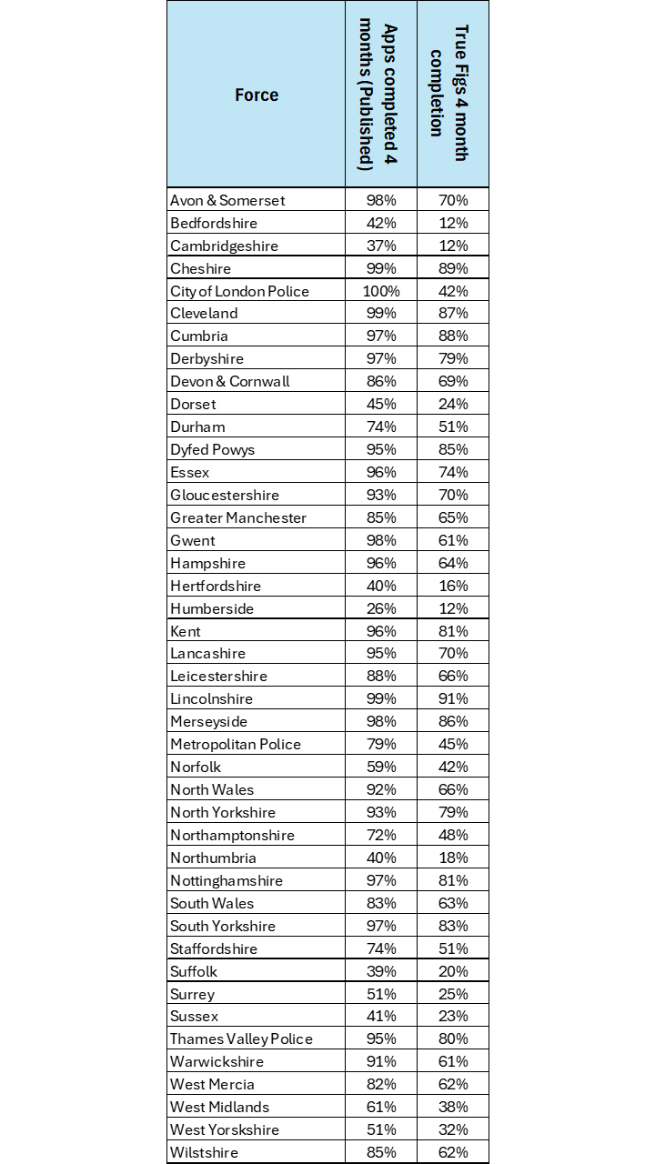 So looking at Bedfordshire we see 1,824 application have been received and 42% completed within 4 months but what does that tell us? Not what we first think…