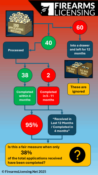 The other complication is that no two forces are working in the same way and the data, particularly on timeliness, is open to abuse. If a force chooses to leave a new application for a month before placing it onto the system or grant the certificate as soon as it’s received the system will not recognise this and the impact on “performance” will be significant.