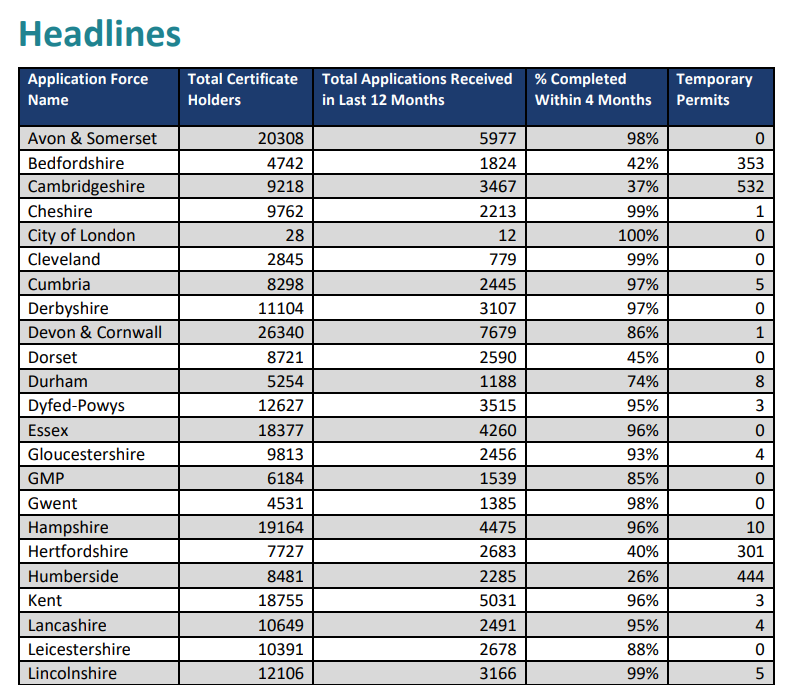 Firearms licensing is a complex system with many variables. The detailed information presented on each individual force is useful but going back to the National Police Chief’s Council (NPCC) earlier comment on what their ambition was for these statistics: